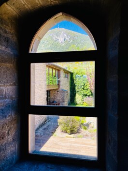 El espacio diáfano de 119 m2 con ventanas góticas y suelo de madera es ideal para diferentes actividades y conversaciones. En esta sala hay un piano eléctrico a disposición de los visitantes.